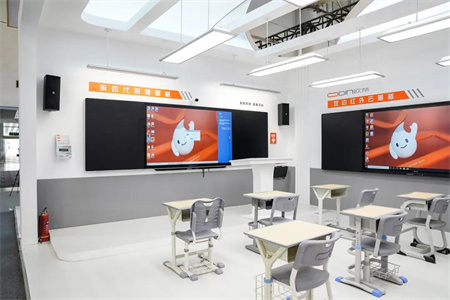 美刻會展作為高博會特裝指定搭建公司,為歐帝科技設(shè)計搭建了320平方米的展臺空間,擁有9個不同的展區(qū),將人工智能校園解決方案、智慧教室解決方案、第四代智慧教室互動黑板、105英寸紅外一體機、8mm極窄雙屏、記憶黑板、智慧講臺、智慧照明、智慧黨建等方案和產(chǎn)品逐一亮相,覆蓋了高教至幼教等幾個不同的年齡層次,為參展者提供“一站式”的觀展體驗。