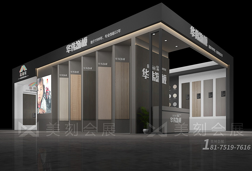 順天下勢,集天下友,成天下事。美刻會展對于華偉展臺設(shè)計搭建,建博會展臺設(shè)計搭建主要表達(dá):在全屋定制、同色配套服務(wù)需求壯大的道路上,華偉飾板 將以專業(yè)的技術(shù)和順應(yīng)國際潮流、引導(dǎo)市場的眼光,在提高品質(zhì)、花色創(chuàng)新上下功夫。
