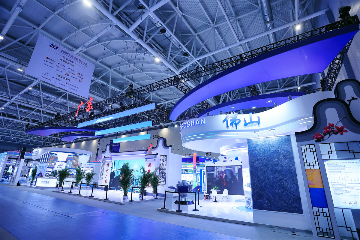 博采科技精華、創(chuàng)新引領未來,美刻會展有幸全程深度助力本次大賽,從三月前美刻接到大賽組展方的合作意向起,美刻團隊立馬成立專題項目組。從提案到定稿中間經歷了無數(shù)次修改,也忘記了加了多少個通宵的班,中間又經歷疫情的延期。美刻的小伙伴們從來不畏艱難,在他們心中的理念是用最好的狀態(tài)做最好的效果,全力以赴。第一屆全國博士后創(chuàng)新創(chuàng)業(yè)大賽總決賽在廣東佛山舉辦,是南粵的榮光,也是美刻人的光榮。作為宣揚大賽的主形象,定位既要有海納百川、敢拼敢闖的廣東精神,又要有引領世界發(fā)展的中國氣魄。廣場主視覺打卡點采用圓形造型,寓意著圓滿、融合、博采,中心是全國各地的城市剪影代表本才選手來自世界各地,博士后博采眾長,引領世界科技潮流。
